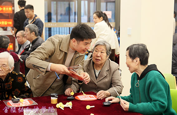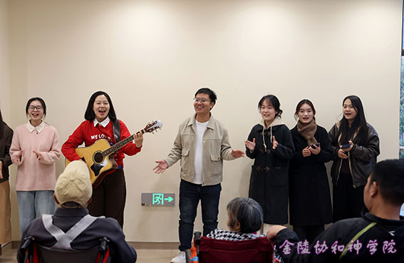 2025年11月8日,金陵协和神学院学生代表前往爱德仁谷颐养院开展爱心探访活动,为老人们送去温暖与祝福,颐养院洋溢着欢声笑语。