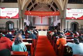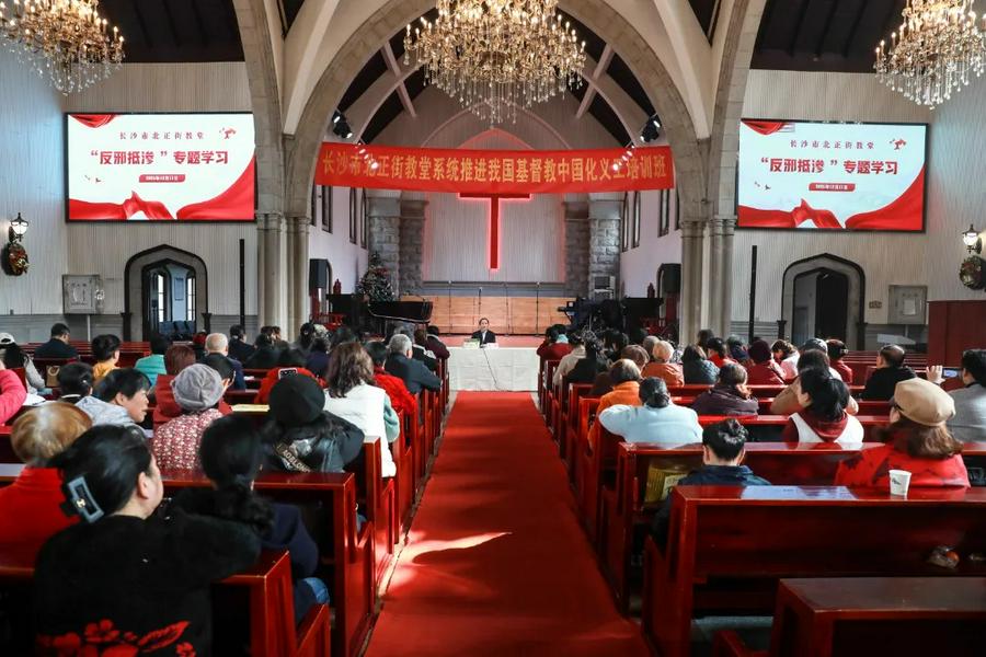 为深入学习贯彻党的二十届四中全会精神,持续深化我国基督教中国化实践,提高教堂服侍人员的法律意识和综合素养,推动教堂规范管理与健康传承,2025年12月11日,长沙市北正街教堂举办了“系统推进我国基督教中国化义工培训班”,教牧同工和义工共102人参加。长沙市民宗局宗教处宋雄斌、长沙市基督教三自爱国运动委员会主席黄克刚牧师、开福区民宗局潘格局长出席了开班仪式并作动员讲话,吴微牧师主持开班仪式。